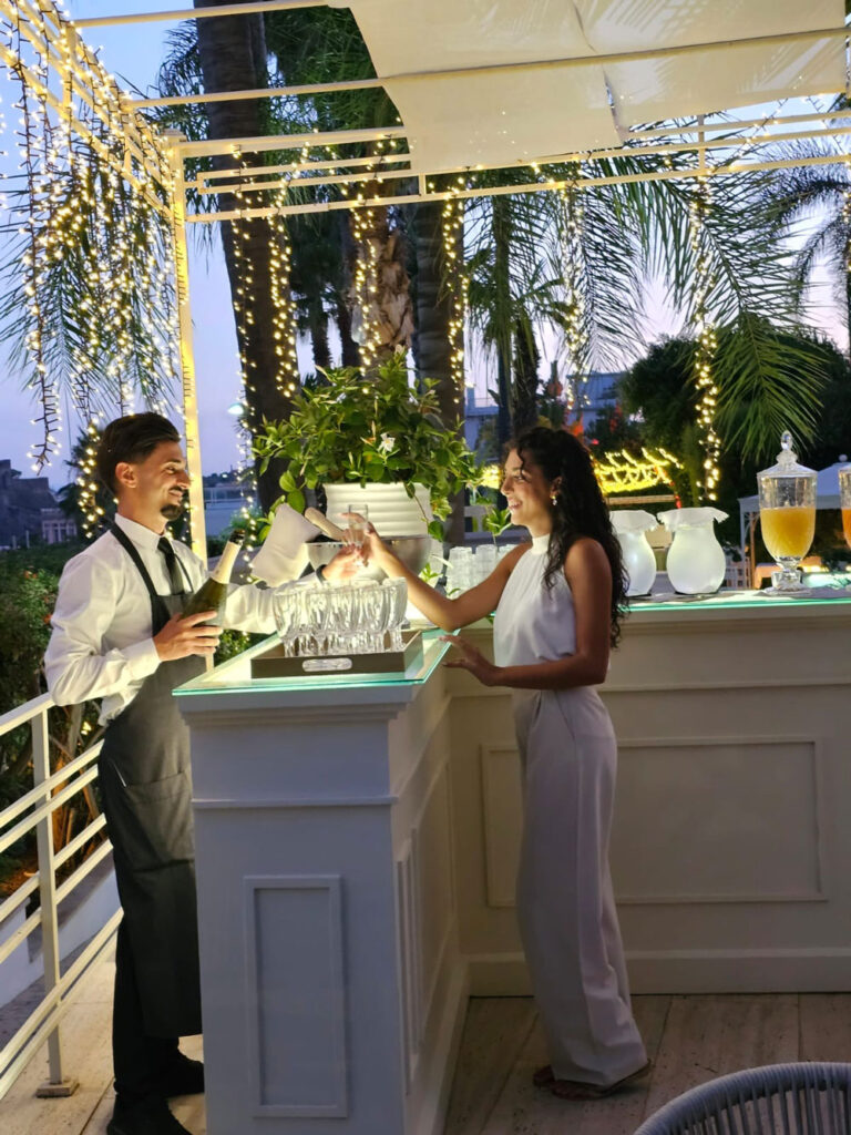 La nostra Terrazza sul Mare offre un’esperienza unica circondata da un giardino tropicale lussureggiante. Lo spazio ampio, ideale per accogliere l’intero evento, si sviluppa attorno a una splendida piscina. La vista mozzafiato sul mare crea uno sfondo perfetto per album fotografici spettacolari, rendendo ogni momento una storia indimenticabile.